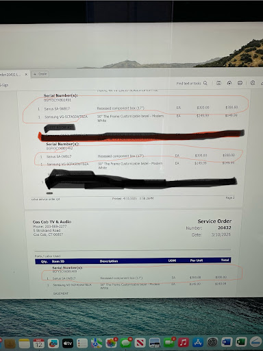 I recently used Cos Cob TV and had a very poor experience with them. I would warn anyone to stay away from this business. Instead of recounting many of the problems we had with them (missing remote, broken TV etc.), I will just show some facts. They informed me that I will pay retail pricing (MAP) on all products from them and that they make their money off of labor (which is high). When I started checking their bills I could see this was not true and they were trying to charge me substantially more than retail pricing for products, in some cases over 300% above retail. For example, they used three Sanus Recessed Component Boxes in my house that they charged me $300 each for. See photo of invoice and note the model number. Those exact boxes (same model number) are sold on the Sanus website for $89.99. See photo. This is just one example of the price gouging out of many from their bill. This place is not an...
