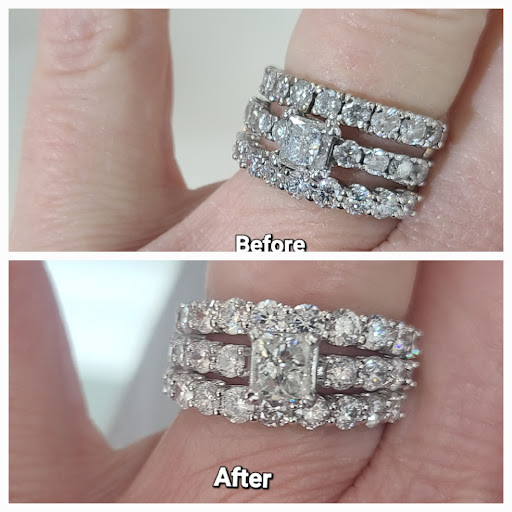 Read moreDo not use these people as repairs. I left one ring and plainly said a hollow spot was on the top and fill it in some and also replace a prong on the stone. I reminded this frigging lady 2 times before I left the store the FIRST day I left it...after this i had to call her 2 times for a price and she said ill call him now so she calls me and says 277.00 I said ok does that include the hollow place on the side she says oh I forgot to tell him I'll call him back now....im thinking how stupid because this is now 3 times telling her about this one place but she calls me back and said the price is 350.00 to include that and I said ok...... i go back to get it and it's still not filled in so I put tape on the ring around the hollow place to be very specific like a 4th grader and she took the tape off and sent me a picture and where her mark was wasn't the place so I called and said I specifically put tape around that one place and allbu could see was that one place t b at needed filled in so who the hell took the tape off and she said she did..... HOW STUPID!!! now she brings it out to me because I've done been there 2 times for the same thing and she even marks that place with a black marker and tells me it will be done Monday after 2pm .. ..I said I work Friday sat and sun 12 hrs each day so I can't pick it up before then and Friday I get a text message saying it's done after she plainly told me Monday after 2pm....I send my husband to go get it Monday and of course that one place I've showed them 4 damn times and the stupid ass even marked it with a black marker is STILL NOT FILLED IN. I dont think she ever took it to her repair man the last time but I will NEVER use these people again and some places was filled in that i NEVER said to fill in ...this was my first time I ever been there and it's the very last!!!!! The two guys that work there are not friendly at all customer service sucks......and the lady must be just plain dumb because after showing them 4 times and beeing VERY specific they still didn't get it right. The lady said the one ring was very detailed and yes it is but if you have a good repair person it doesnt matter how detailed the ring is...I left one other ring and a bracelet for prong repairs and surprisingly they was done correctly but just 3 pieces cost $350.00 just to repair and none of them people ever smiled or said thank you. No manners and absolutely no customer...
