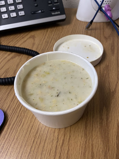 I ordered the fish and chips as did my co-worker. There is the option to get homemade potato chips which are very tasty or get crinkle cut fries which are also very tasty. The potato chips were very light and appeared to be baked and the fish is made of Ling Cod. I also ordered a cup of chowder.