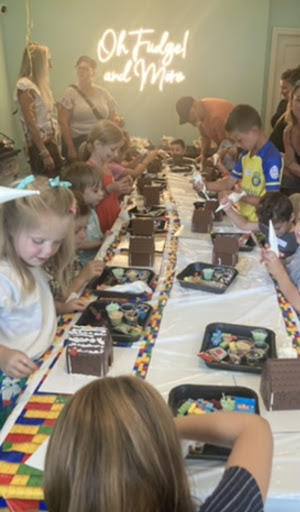 What a treat it was to host our son’s fifth birthday party at Oh Fudge and More! It was so nice to just show up on his special day and not be running around as the host. My husband and I were able to enjoy watching our children and their friends decorate chocolate houses with a Lego theme.