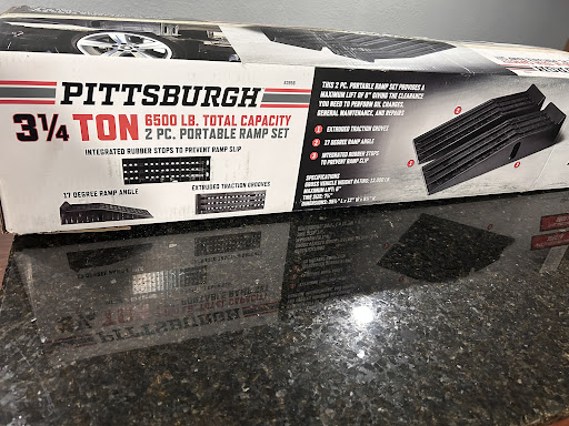 Read moreI highly recommend you go and check out your local Harbor freight store. I love shopping here. They have a bit of any kind of tool you may need at a very great price. The Haines city Harbor freight staff are very helpful. I’ve shopped here on numerous occasions and am always pleased with the great deals they have. I received my free bucket this weekend with my purchase of $25 and over. I love the ramps I purchased for my vehicle. While I am no professional mechanic, these ramps were exactly what I was looking for. They are very light weight, easy to store, and seem very durable. (I’ll keep you all posted on their durability) I tried them out on both cement and dirt and they stayed in place. (Please don’t mind my dirty car lol)