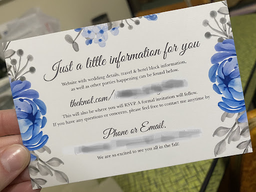 Read moreI went here for the first time to have them help me create a little information slip to put in with my save the dates. They absolutely did a magnificent job. They put on the information I needed in a beautiful fashion and designed it just wonderfully. I asked for simple elegance and they gave me exactly that. I couldn’t be happier. (Obviously I blocked my information that’s the greyed out part) I will absolutely go back to them to design my wedding invitations. They are also extremely affordable as well as I had my order designed and approved by me and ready for pickup within a week. Also very friendly and professional. 10 out of 5 stars....