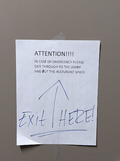 Obviously, I notified the fire department and they responded and took steps to mitigate the risk until the issue was resolved. However, it served as another example of inferior construction and poor management. They were aware of the issue and had simply placed paper signs to use other doors.