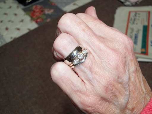 UPDATE: 4/4/2022: You see the picture of my ring on my 25th anniversary where Cindy (the jeweler) placed the 2 pear-shaped diamonds on either side of the round center diamond. Well, here it is 5 years later - my 30th wedding anniversary came and I wanted 3 dots of gold (to mark the 30 years) and she did a fabulous job - here is a picture of my wedding ring now - with the 18-kt. gold studs placed on the ring as only she could do - with perfection. I urge you to go to Mikesell's for any fine jewelry you are looking for; their collections are stunning. I was thrilled to receive a gorgeous turqoise pendant for Christmas. But I want you to look at the unbelievable job she did on my wedding ring. Go to Mikesell's; make your dreams...