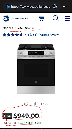 Read moreWe contacted Mumma on Friday (5/30) to inquire about the GE stove model #GGS600AVFS. A sales lady quoted us $1,100 installed (plus tax), which we felt was reasonable—especially considering the stove's regular price is $1,649 and it was on sale for $949. The $1,100 included installation and hauling away the old unit, so we planned to place our order in person the next morning.