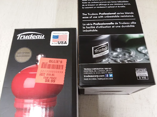 Read moreWent to Ollie's this afternoon and spent over three-hour shopping. It was a blast, so many items to view. It was not especially busy and the crowd seemed to be enjoying themselves. All the staff was friendly and helpful. The one complaint is relatively minor, but Ollie's put a "big 'ol" sign up about it, so they deserve some flack about it... Ollie's offers free coffee and put a large sign up saying " The pot is always on..." However, the pot may have been on but it was empty, there were no cups or suger either (they say "use 2 sugers, it's been a pretty good year!"). So the complaint, I advised an associate the coffee was empty and 3-hours later, it still was... But, we still had a great time shopping for a new rug and numerous snacks in the food section... One more note, not a complaint, just an observation. We looked at a pepper mill and noticed a US Flag tag on the box. The tag said, "Proudly filled in the USA", NOT MADE IN THE USA... The back the box said, Made in China... I've included a photo. It's not fraud, but it is misleading... YOU'VE...