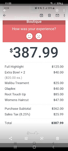 Ā Ā Ā Read moreBeware! Southern Grace Salon and Boutique is unimaginably the worse salon I have ever encountered. They are full of lies and deception, especially the stylist Alicia. Alicia was my stylist and during my first appointment on May 18, I showed her a picture of a cut and color I was looking for. Instead, she gave me her professional opinion and suggested a different route for color, so I took it. Huge mistake! My highlights are bleached chunks. After coloring, she left while another stylist, Lynda was applying a heat treatment to my hair. Alicia never spoke with me or Lynda that she was leaving and left my haircut uneven. Thankfully Lynda did a great job on my keratin treatment and tried to fix the cut but didnāt even know the style I was going for. The cut was also much much shorter than I asked for. I specifically asked to have enough hair for a pony tail, that didnāt happen. After 2 weeks of waiting, I finally met with Alicia at the salon to correct the color. She lied to me about her electricity and the product from Fedex. As Iām in the chair, sheās yelling at me in front of her son and another woman who walked in. All while Iām in tears! She told me they have never given refunds since they have been open from 2001. Thatās a lie because the next day, after my husband and mother confronted her, she refunded us some of our money. We asked multiple times to speak with the owner but they gave us the run around. The only positive thing I can say about my experience was Lynda. This place is so awful and unprofessional. I would never suggest this place to anyone. And like the other reviews say, do not...