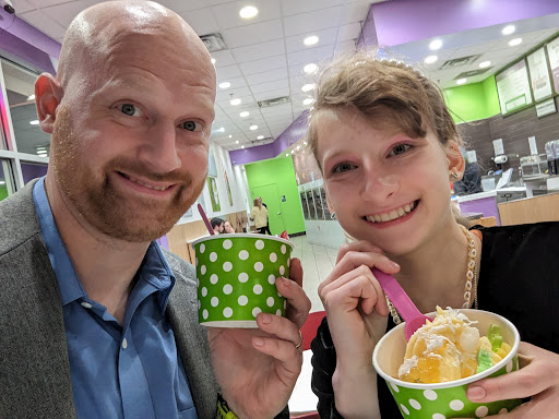 Read moreFamily wanted a sweet treat tonight after dinner and we stopped in. Experience was great. The product wasn't as overly priced as most other frozen yogurt places with a similar foot print. There were a couple young ladies working and they were busy when we went. Both were very pleasant and working hard! I even asked one of the ladies if I could get a towel to wipe down the table we sat at because it was sticky. She apologized and offered to wipe it down herself. I told her a family with a toddler who really enjoyed her fro-yo had just left and I would do it. I think she was hesitant to hand it to me because she thought it was her job. I don't know the owner, but the young lady with glasses, tattoos, and multicolored dyed hair is awesome! If my business were located in the area I would try...