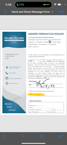 This review is regarding the Hand and Stone in Concord. I have NEVER BEEN so frustrated and insulted. They received a 1 only because I had to pick a star in order to post. I could go ON and ON with a very detailed description of my experience, BUT I've wasted enough energy for the past hour. I typically do not write reviews of this nature; but the treatment received merits full disclosure. At this facility, MANAGEMENT is far from professional. I personally travelled to cancel ALL further appointments in their system and asked them to remove my card on file. (BEWARE IF YOU HAVE A CARD ON FILE AND EVER TRY TO CANCEL SERVICES). I did it in person because they have NEVER answered the phone when I've called and no one has EVER returned a call. While in person at my request, I was assured that every future appointment was cancelled. As stated, In the past I have left messages and never received return calls or responses. I can only get through to someone on the phone if I use the prompt to book an appointment. IN RECENT DAYS, they sent message and texts confirming my upcoming appointment. I knew I did not schedule any further appointments with them. I called, but of course got voicemail. And since I'd cancelled previously ALL future appointments, I neither had the time or thought that I needed to travel to Concord to do this again. Well, how wrong was I? They charged my card and called me a no show! I expected that a simple call explaining their error would be sufficient. Again, Boy was I WRONG!!! They have passed the buck and refused to credit my account for the $49 they took out without my permission. In this series of events (that really should not have been escalated to this degree, I have spoken with Savannah (customer relations), Melissa and Sherri, who the latter is said to be the Manager. Sherri DID NOT FIX THE SITUATION but made it worse with condescending comments, interrogations and basically calling me a liar and then blaming me for not knowing the name of the staff member who I spoke with months ago who said they took all future appointments out of the system as I requested. She further said if I didn't know the name, then can I at least describe her. (mmmmm...Really? Is that MY job to know??) I suggested she look up the last day I was there and consider who may have been on the schedule. (Again was that my job to do?). She refused and was combative or at least frustratingly insulting and time consuming. She accused me of cussing (which I do not and did not) and used it as her out to hang up. When I called back of course she would not come to the phone but another manager, Audrea did. (At least she was apologetic although she had no power to do anything). Before the conversation escalated with Sherri, I asked for corporate information--someone above her, she did not provide that information. The biggest challenge besides the professionalism that escalating the situation is that they still have my card on file an can use it whenever they so desire "calling me an NO SHOW." ...