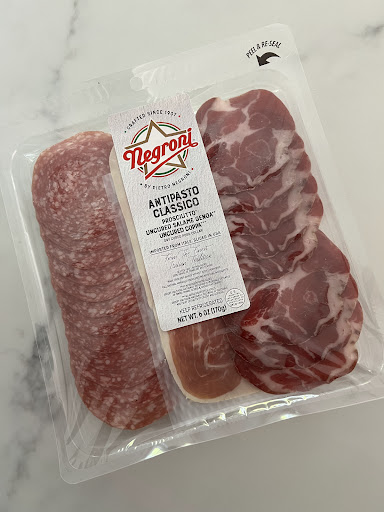 Their brand, ‘Negroni Antipasto Classico’ is a wonderful quality product for entertaining and ideal to bring on a picnic, along with some fruit, cheeses and a chunk of bread. This 6oz. re-sealable package consists of Prosciutto, Uncured Salame Genoa and Uncured Coppa. About 25 slices. Processed meats are high in sodium, and this is no different. A pork product that is made in Italy and sliced and packaged in the USA. $5.99 at Market...