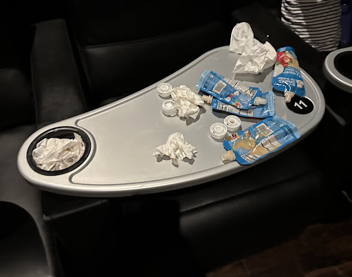 Inside the theater, the first row seats were extremely uncomfortable. Those seats could not recline backward. The projector was out of focus. The entire film wasn't sharp. I never experienced a theater with an out of focus projector before. Why wasn't someone in the projector room checking the screen?