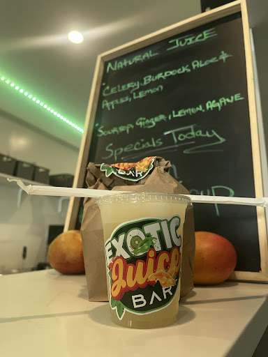 Read moreExotic juice bar has a variety of wellness shots to choose from I chose PURE IMMUNITY which is fresh pomegranate, ginger, and Elderberry. Their service is amazing and the ladies are helpful with anything you need. I personally recommend their wellness shots and natural fruit juices! Their quality food and beverages are smooth, tasty, and truly delicious. Come here for your to-go breakfast, lunch, and...