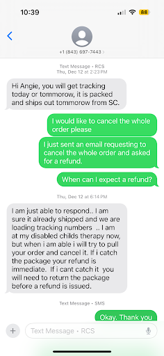 Worst experience ever! I ordered two different outfits for my granddaughter and ordered them in enough time for them to get to me according to their shipping policy. It was getting closer to the time that I needed the outfits and I still had not received shipping information so I sent an email to ask about the order and did not receive an answer. Two days later I sent another email and called, once again, no answer. I called again the next day and nothing. I then sent another email email asking to cancel my order and refund my money. It was only then that i finally received a text from the lady. This was what was sent to me⦠you will get tracking today or tommorow, it is packed and ships out tommorow from SC. I copied and pasted the text so that it is word for word. I then told her not to even ship the order and just refund my money. She then tells meā¦..āI am sure it already shipped.ā Well that was a contradiction to what the first text said. I then get a notification the very next day that it had shipped, mind you I donāt even need the outfits at this point as the day had past for my granddaughter to even wear the first one. I finally receive the order the day after I wanted my granddaughter to wear the second outfit. I go to return the package the very next day and even paid for tracking so I would know the day she received it. That very day I sent another text asking when I will get my refund because I knew the package had been delivered. I donāt hear from the lady until the next day and she says that she had not received the items. So I send a screenshot that shows it was delivered. Only then does she issue a refund and it was only a partial refund. She says to me that she does not issue a refund for the cost of the shipping and then proceeds to tell me that she made a trip to the store to see if the package has arrived so she could issue my refund and that it was hanging halfway out of the mailbox. Well if she knew the package had arrived then why did she say this to me in the first placeā¦. I have not recieved the items back yet. Do you have a tracking for return?ā¦.again copied and pasted from the text. If I would t have even texted asking about the refund and then actually provided proof that it was delivered, I am sure that I would have never gotten a refund back again which did not include the shipping that I paid to have it sent to me and the shipping that I paid to have it shipped back. This lady is obviously a liar as she had contradicted herself several times throughout our text message conversation and she definitely does not know how to run an honest business. I will agree with the lady that left a review just a week ago, donāt waste your time and money on this place as the service is extremely poor. I will be keeping the whole conversation that was done through text if anyone would...