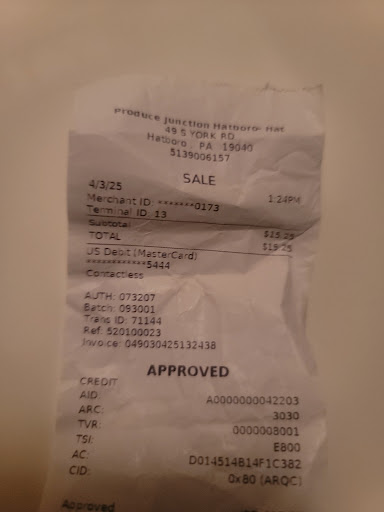 Read moreI have been going to the Hatboro Produce Jct for about 4 years. The staff are very quick to count up your bill, which makes the lines go quickly. Yes, it does help to know what your order will come to before you check out. They are only human, and often pressed for time, as you and I get impatient in lines . If you see a bad apple or onion in the bag they give you, they are quick to reach for another bag. The variety of food, plants, and flowers is the BEST. Sometimes, I do share the food with friends, but even then, you still come out far head of grocery store prices. Their produce moves very quickly due to the low prices, so they always have fresh food....it doesn't sit around for a week, as some in markets do. Also, at Christmas time, you can't get a more beautiful tree for $27.00 any place else. I...