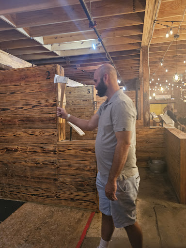 My wife and I came to Alley Cats to top off a wonderful date night. We were greeted warmly and we instantly felt comfortable. You get paired with a throwing coach to make sure everyone stays safe which really puts the mind at ease. Both my wife and I eventually became decent at getting an axe stuck to the board so we started playing some games they have. It was a major plus to have our coach then as they gave us pointers and kept score! Also, you get to pick a cool alias to for your axe throwing persona. My wife, of course, chose "Violent Offender" whereas I crafted an ingenius name of "Slightly Less Violent Offender". My wife unwound with a nice Margherita while I kept refreshed with a nice glass of ice water. We loved our night at Alley Cats! We recommend this place to anyone who wants to switch up date night or even as a place to get together with...