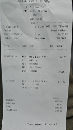 Read moreRachel Savell and her staff are the absolute best!! I am a person of color and my husband loves country attire. The boot/country stores that we usually experience in south Mississippi usually aren't very kind or helpful to our kind whenever we shop there, which is why we usually shop online.. but CAVENDER'S of Hattiesburg is the exception!! They were so kind to us!! Sydney was amazing, knowledgeable, and so welcoming!! Country isnt even my personal style but the way I was treated there just made me want to spend all my...