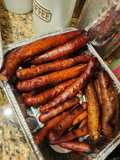 Read moreWas in town recently from Texas to visit my moms. My family was having a hankering for some smoked brisket so I brought a slab with me to throw on some hot wood. I stopped by ole Ramey's grocery store in Collins to pick me up some pimento cheese and saw a link of the Lil' Butchers Shoppe's "Blueberry Sausage" sitting on the shelf that caught my third eye. Threw it in the basket cause I thought what the hell, I was bout to fire up the pit anyways. Got home and threw it under some smoke and I will tell you that I am a real Texan so link sausage is in my everyday vocabulary. This blueberry sausage was good enough to knock the dust off your socks then knock your socks off your feet! Upset that I didn't buy more to bring home. Next time I will go to the shoppe to see what else they got to impress me with! If you're ever around, hop on in there and getchuns'...