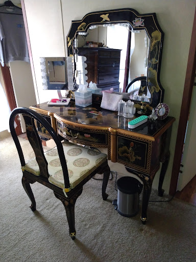 Ā Ā Ā Read moreMy wife's eccentricity literally floors me at times, especially when she closes a "bid" like this antique vanity, which she obtained before this auction closed. WOW!!...just see what caught my eyes once we arrived to pick up this vanity with the matching chair and the matching...