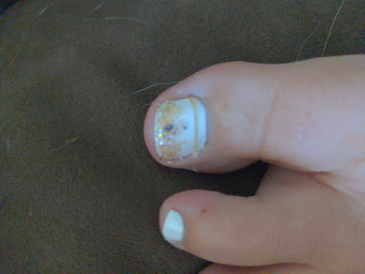 Beyond the design, my basic color coat didn't even cover the whole nail. This is the second time this has happened. It makes my pedicure look like it's already grown out of the paint.