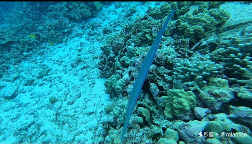 The dive started at 7:00 pm and after getting in the water with the dive master you do a weight check to make sure you can sink, you follow the bouy line in front of the boat to the bottom of the ocean about 35 ft. Then Natalie checked that everyone is okay and leads you to the fire circle and directs you to your "seat" for the show, large rock to prop yourself up on, like a movie theatre usher.