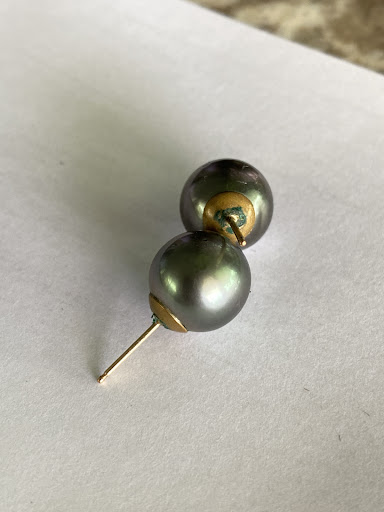 I purchased a pair of Tahitian pearls and had them made into post earrings there on the spot. In a couple of months they where completely corroded and caused my earlobes to turn green. I didnât try to return them than but I mentioned it to my husband.
