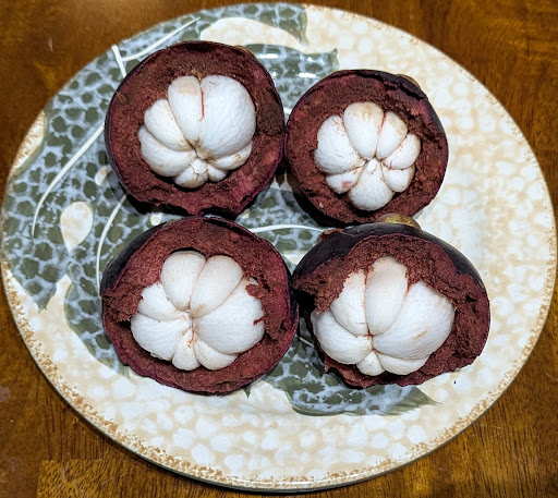 Today at the Hakalau Farmers' Market I purchased the freshest, ripest, juiciest, and tastiest mangosteens I've had since I lived in rural SE Asia 25 years ago. For $5 per pound!!! Also two dozen free range eggs (washed or unwashed). And a homemade sourdough chocolate croissant (which I ate before I could take a picture). But only four stars because a few vendors have attitude problems. Perhaps they think themselves to good to sell to...