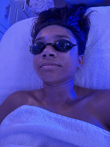 My facial started with double cleansing, and my esthetician was very thorough. Then we moved to the Hydrafacial MD part of the treatment and I could feel how the machine is sucking the gunk straight out of my face. We also did dermaplaning and I couldn't believe how different my face felt after she was done. We finished off with LED light therapy.