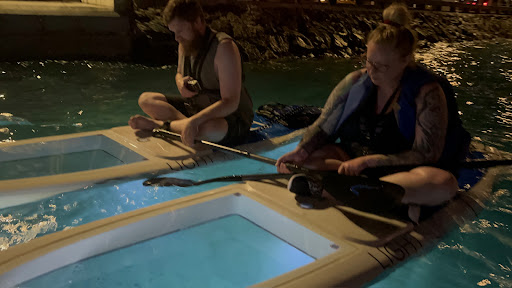 The boards are very unique. The glass is like a giant snorkel mask. You can see fish and coral below with much clarity. The boards are placed in the water for you so you don’t have to lift or carry them.