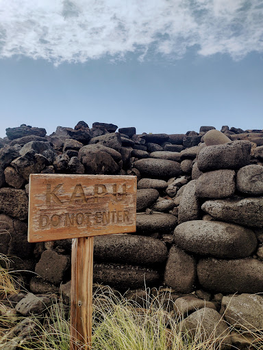 Many of the posted photos are incorrect and instead of the Nat Historic Park many miles south, south of Captain Cook. There are no ki'i (wood figures if the gods) here. This Heiau didn't have much in the way of signs explaining it. Just the sign explaining the whole site at the entry points. There are many other Heiau to see on the island...