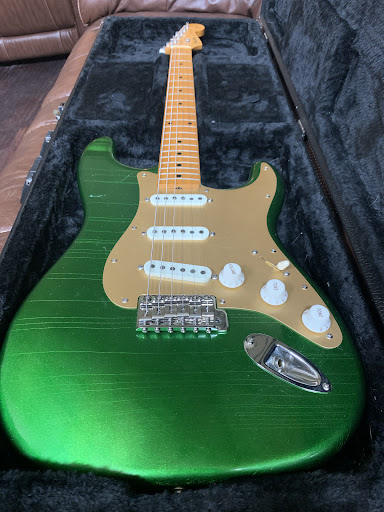 Very unusual and interesting guitar store inexplicably tucked away in a rural small town in East Texas. It is absolutely jammed with all manner of guitars and guitar-related gear, most of which appears to be used/vintage. In addition to functional guitars of every brand and description, there are numerous guitars in various states of disassembly and disrepair, many of them quality brands like Fender and Gibson (some of which were quite old). I found the place by accident when I was visiting the area, but it’s apparently known to more people than you might think, including at least one guitar hero (Eric Johnson, whose picture posing with store employees was displayed). The fellow who waited on me was very nice and even climbed on top of an amp to retrieve a guitar on a very high rack. Met Kelly, the owner, who was also friendly and helpful. One note of caution if you are serious about vintage guitars: This is the type of guitar store that you will want to spend a significant amount of time taking in. I only had about 30 minutes and that was not nearly...