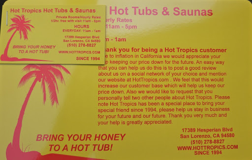If you Show up before 4pm they give you an extra 30 minutes added onto your hourly rate , which makes it all worth while financially, for me to be able to go myself weekly. The overall cleanness eases my germ phobia. As soon as I enter my room, I'm turning up the radio provided, or lay out on the sheet covered bed for a bit, then hit the sauna or hot tub (i sprinkle the optional lavender bath salts ahh they therapeutically rejuvenate my senses, then I manually open iup the retractable roof for instant fresh air & star gazing while soaking in hot tub, and lastly, finish up taking a fresh shower that has terrific water pressure. Plus they also provide liquid soap you can use but I bring my own. All these amenities I explained above are all included inside my personal room for complete privacy and enjoyment! . I'M grateful for their staff's easy going mentality because I'm able to truly enjoy my me time fully and rock my music or sing (thank goodness the insulation is sound proof-great by keeping in all my loud noises, which keeps everybody happy and ears safe from not having to hear me in neighboring rooms :) Leaving hot tropics feels similar to having a 1 hour massage because the jets are great at loosening up body strains and muscle tension. This is a great option if like myself you lack access to a spa...