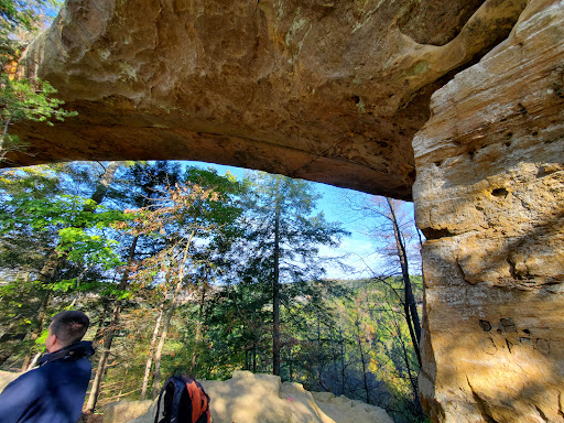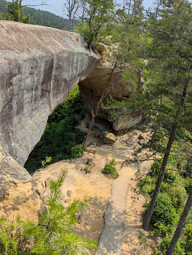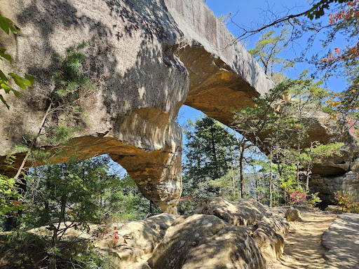 This trail in the Red River Gorge area offers some of the best views to be seen there. It is less than a mile long and is fairly easy except for quite a few uphill steps coming. back. Sky Bridge is a huge, beautiful Arch. The trail goes right across it. It is high and mostly wide with a narrower part as you cross. If you are a bit shaky, it may be better to just enjoy the view from below as the loop affords you the option of not crossing the Bridge. It is a popular spot so you can't spend a lot of time on top anyway. Magnificent views and up close looks at awesome rock formations. As always, stay on the trail and be aware of your surroundings. It is unforgiving if you go astray too far. We enjoyed this...
