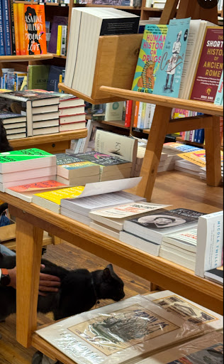This bookstore was an absolute delight to wander through. We were immediately greeted by a dark gray cat (Zora)—modest yet friendly—which set such a cozy tone. The second cat was had an adorable white coat but happened to be in a mood. Not unfriendly though.