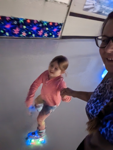Read moreI love bringing my family here every Tuesday. It's $4 skating on Tuesdays and the grandkids bring their own skates. One is 5 and one is 3. The 5 year old skates the whole time and the 3 year old is off and on. When he's not skating he is entertained with the games they have there. They serve food and drinks. They do have these things(not sure what they're called) that you can rent to help assist in skating as posted in the photo above. We are returning customers. The...