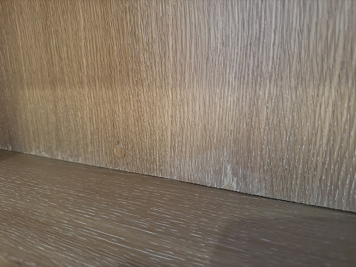 Overall the cabinet/bookshelf that they built was nice but they really messed up one of the boards right in the front of the bookshelf. The board was obviously cut with a dull saw and tore up the wood grain. What was surprising to me was that they still elected to use that piece of wood. Furthermore the only option they gave me to fix this oversight was to place a small trim board in front of it instead of replacing the entire board, which would look...