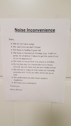 The hallway heaters rattle the walls with vibration. I have not opened many doors that open or close without difficulty or won't shut properly, both in the common areas and into the apartments. This place is not level and/or whomever hung the doors might have done their best. In one apartment, the bathroom door won't shut or lock and the front door needs to be locked with the dead bolt or it's not latching shut. The dishwasher is not anchored and falls forward when loaded. The microwave needed to be replaced immediately and the replacement beeps endlessly until you push clear. The new refrigerator is as noisy an old unit. The furnace is so loud that the tv or music must be turned up to a ridiculous volume to be audible, obviously too loud once the furnace shuts off. The hot and cold are backward in the shower. The racks in the bedroom closet are so close to the shelf that a hanger doesn't fit without force or enough room with a good angle of approach. The tack strip for the carpet meeting the linoleum is poking through enough that the nails easily puncture your (or a guests') feet if you don't step over it. The base boards in the bathroom are so far from the floor in some places that there are 1/4 inch shims exposed and maybe a