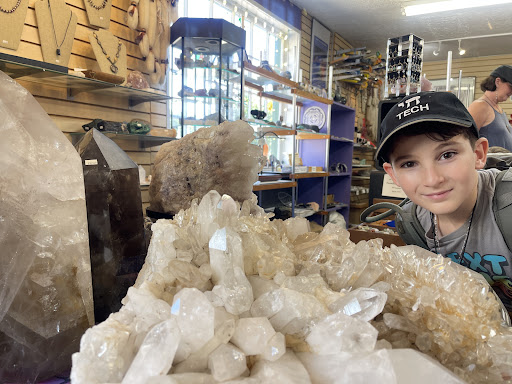 Not that this review matters or makes any difference to the buisness or any tourist that goes in there but I am going on a limb here to assume that the rude older lady with the glasses is the owner of the shop. I am assuming that since she owns a crystal and rock shop, she knows and understands that some of the crystals she sells absorb negative emotions and energy. A rude owner could be precieved as a disturbance and block to the crystal's natural energy flow and healing properties. Her creating such a negative atmosphere in the store with her rude behavior to her customers, it would make one worry about how it affects the energy and perception of the crystals that she sells.