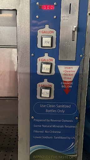 It's better to come during the day when they are open, if you can, and a friendly staff member will take your money and you can fill up your bottles at one of the many faucets. The machines are available 24/7, but there were several times at night when we inserted a dollar, filled a gallon and only received 1 or 2 quarters in change, and had to return during the day when they were open for a refund.