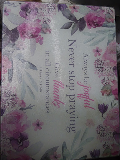 Read moreI've been patronizing this store for about 29 years since it opened. I've placed orders online with them when they did not have it in stock. The delivery to the store after placing the order, was prompt and within a reasonable time. The store boasts of anywhere from jewelry, greeting cards, wind chimes, pictures for the walls, stuffed animals ( I collect lambs), all kind of God centered books, interesting things that are God honoring. Glass cutting boards for the kitchen with Scripture verses on them, Hand sanitizer, Bible Covers, Flags with staff holder for the Garden, lip balm, body lotion, hand sanitizer, clothing- "T" shirts with meaningful scriptures and God honoring phrases, you name it! Something for ALL age groups, etc. The merchandise has always been top quality. Never been disappointed all those 29+ years of going there! They are a Blessing to this community and abroad. I've posted a photo of one of the Glass cutting boards I purchased at Majesty's. The scripture...
