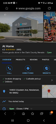 Read moreWalking out of Trader Joe's, we noticed the At Home store. It's been a while since we've been to this part of town. In effect, this is a new store to us. I vaguely remember there was a Kmart here, am I right? This store is huge; I mean Lowes, Home Depot, and Costco huge. Even though there were many empty shelves and space, it still has more general "home" merchandise anywhere that I've seen. For those of you who have never been to this store, I can only equate it as a much larger version of the Home Goods Store operated by the TJX Companies, the same people that run TJ Maxx and Marshalls Department Stores.