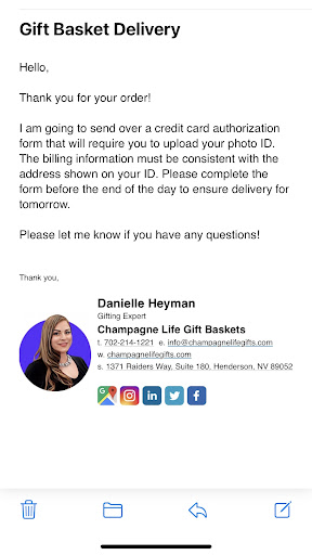 Furthermore, while you CLAIM the ID was invalid you had no problem processing the order on his American Express immediately (as you confirmed with your "refund" offer), yet didn't fulfill the order. What ACTUALLY happened, was that YOU never sent me a credit card authorization form yesterday. So yes, I contacted you today asking why you charged the card but did not deliver the basket. That's when you mentioned the form. Along with a seemingly (but clearly false) heartfelt apology and an offer to get the approval to get my order rushed out today. I sent you the form within minutes of our conversation and did as you instructed me to get this handled today.