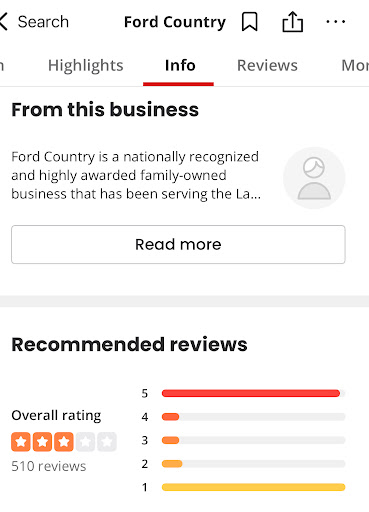 Read moreI bought a truck from these guys in late September and payed it off right then and there ($35k) it was a used 2016 f150 i bought the full premium care warranty etc. They sold it to me with 1 key and i ended up needing another key to turn off their stupid MYKEY feature that was left on when they sold me the truck, my speed was limited to 70mph and the radio volume only turned up to half way. They insisted they couldn't do anything about it since they weren't given the 2nd key and I had to pay a locksmith $180 to get another key since ford told me they would be charging me around $500 for a replacement key and just recently i had water "leaking" into my truck after it rained damaging the BCM making my trucks electronics go haywire , horn blaring cant turn off my emergency flashers. I took it to ford country the next day to get it looked at. They charged me $200 for an inspection and told me i needed a new windshield and to replace the BCM. I thought it would be covered by warranty since i just bought the truck and only put about 9000 miles on it since i bought it, NOPE. Told me the windshield was aftermarket which they didn't tell me about when i bought the truck and since it was the windshield that caused the leak they weren't going to cover a single penny and told me it was going to be $2900 to replace. I went home and did some self investigating on the leak and I looked where they found water which was under the passenger side front running board and noticed the PUDDLE of water that they found. They didn't even bother to clean up the water and threw the cables right back into it. I cleaned it up and noticed a bunch of corrosion and a little bit of surface rust. if you ask me, rust doesn't form in 2 days. I've been going back and forth left and right with the dealership. They told me to talk to their sales team and the guy who sold it to me and see what he can do about it. Turns out he doesn't work there anymore. Some sales team manager said i could have taken it through carwashes etc. trying to blame me and after telling her i have no paperwork or anything about it being an aftermarket windshield she says "Well there is a chance not even the guy who sold it to you knew it was.".....HOW IS THAT MY FAULT. I assume they wont help me with the windshield since they cant prove I didn't put it on since buying the truck, But i mean you can look at the seals of the windshield and tell that the windshield has been on the truck significantly longer then 6 months. I get in contact with the guy who I've been talking to in service and he tells me hes going to see what he can do and he will call me back tomorrow after talking to some more people. I didn't receive a call back from him after 3 days. Come to find out he ALSO doesn't work there anymore, Which im not surprised since he sat in my truck to get photos when i went in for the inspection and he looked at my seatbelt light when it was on since he didn't have his seatbelt on and says "Was your airbag light always on?" after telling him that's the seatbelt light he looks at me like I'm stupid and puts on the seatbelt and it turns off and says "Oh i didn't know this year had those." keep in mind this guys wearing a shirt that says MASTER CERTIFIED TECHNICIAN which is absolutely unbelievable. This water problem has been happening for 2 weeks and i haven't been able to drive my truck and i have to disconnect my battery whal its parked since i cant turn the flashers off. I haven't drove my truck since and have received an ounce of help from anyone there. I feel like i bought a money pit of a truck that ive only had for 6 MONTHS and im running in circles with these people and have yet to receive any ACTUAL help just dead-end...
