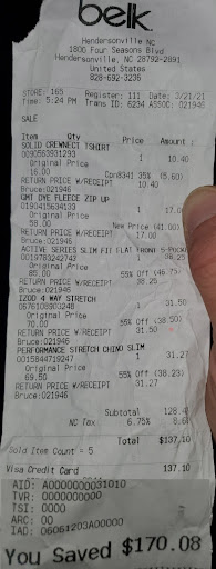 Read moreThis Belks used to be a great hometown store with sales clerks who had been there many many years. The past two times I visited, both within the past 3 months, I have had the clerks in the women’s dept. essentially harassing me. The first one, an older woman with white hair, got her feathers ruffled when I didn’t want to apply for a Belks credit card. I said I don’t buy lingerie on credit. She said Belks won’t stay open much longer if people don’t get their credit card as that’s where they make their money! The yesterday the younger blonde clerk kept pressing me for my email address at checkout. I said I don’t want emails and declined to give it. She said, you can make one up. I said, no thanks and she pushed me even further on it, saying associates are required to get an email address. I replied, that’s your problem. I believable! I wonder if it is just bad management at this store or a company-wide aggressive campaign. Makes me not want to shop...