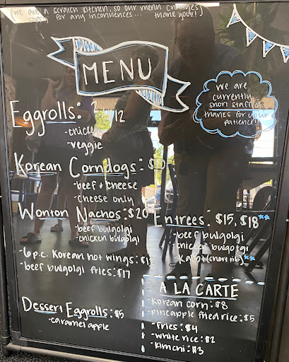 Read moreSo first I want to say the bulgogi flavors were great. Tasted really good and the egg rolls were good flavor and large! However the portion sizes of the bulgogi and corn dog I ordered were tiny. Like 3.5 pieces of short ribs and a small scoop of fried rice, and no kimchi even? Mind you the prices are pretty high. I mean $20+ for a few short ribs and a small amount of rice and no kimchi. On top of that the korean corn dog I ordered (beef and cheese) was mostly cheese and dough. They cut a tiny hot dog in half which meant half of the entire corn dog was just cheese and dough(look at the picture I included)...for the price you're paying here you should be given MUCH bigger portion sizes. I understand they are locally sourcing their food but portion sizes are laughable. We paid (my husband and I) $72 and we're not even full and I'm a petite person! Won't be coming back unless they fix their pricing and...