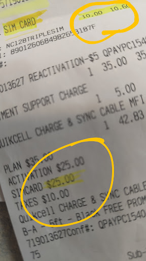 Read moreI was scamed i was charged 199 for a a phone that dosent work and was charged for a pair of earphones the guy said it was free because they had no bags i noticed later he charged for the earphones 64 dollars discounted 20 dollars so the phone and activation fees taxes and payment free should of come out to around 150 not 199 so earphones where not free but 49 dollars i whent back and complain he denied and said thats how it shows on reciped but not how it works i been a customer for more then a year i was getting new phone...