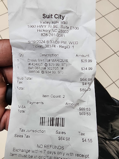 Read moreWorst customer service I’ve ever experienced, Indian guy is rude and definitely doesn’t care about customer satisfaction. We rented the tux on Monday evening and found out the event was canceled on Tuesday evening so we went to Suit City Wednesday Morning and was told the Tux rental can’t be canceled. Even though it wasn’t supposed to be delivered to his store until 7 days from now. No refunds offered, nothing. Just supposed to be out of over $60 (half payment). Glad we didn’t pay the full amount because this jack leg wouldn’t have given it back either. If I could give 0 stars I would. We will...