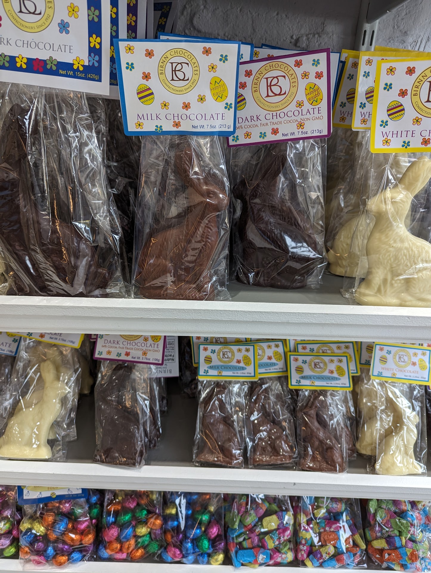 The Phoenix rises once again! More than a decade ago I was a loyal patron for home, office and holiday treats. Over time Birnn's offerings grew limited and the demographic I filled was no longer welcome. My grandchildren are older, now, and I thought I'd surprise them with old fashioned hollow dark chocolate decorated Easter Eggs as I remembered them as a child: large dark chocolate eggs with a light chocolate decorative ribbon stuffed with more chocolates inside. I searched until Birnn appeared. Wow, not quite the dark chocolate with contrasting chocolate ribbon, but darn close. I ordered 3 and to my delight got a call from "Diane," who offered to save me shipping and drop them herself. Where in the world today would you find such a gracious and generous offer? And it wasn't even in response to a request made by me. The offer was spontaneous from Birnn! She did what she said she would, but most significantly and what prompts me to write this review is what my grandchildren texted. They usually say, "Thank you," but these eggs put big thanks and glee into their "Thank yous," thrilling with my choice. I see Birrn again offers high end dark chocolates I crave and love to gift. I'm hoping Birnn will add the joy of old fashioned hot fudge sauce ala what was once Grunings hot fudge. You can't find true chewy hot fudge sauce the way Grunings did it. In fact, to this day, you find Grunings hot fudge aficionados online yet searching for the Holy Grail of hot fudge. If you've never savored that ethereal combination of dark chewy hot fudge over vanilla ice cream, try Mother Myrick's in Manchester, Vermont, or Enjou, in Morristown. I buy it by the case, and what I don't consume, I gift. Glad to rediscover and...