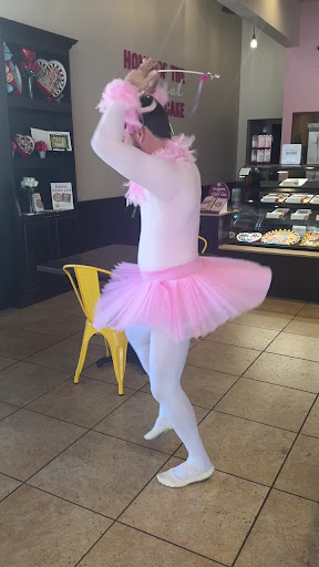 The staff at Great American Cookies (1400 Shoal Creek #110) delivered delicious cookies and turned a lost bet into pure comedy gold! My brother Mitch sashayed in, looking like a Cookie Fairy. A bearded man decked out in a frilly pink tutu, a flamboyant feather boa, and tights! They had him prancing across the street like a giddy flamingo, twirling with exaggerated flair, striking absurd poses, and even curtseying with a flourish!