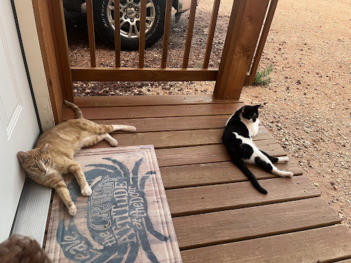 My boyfriend and I personally really liked the AC unit above our heads on the bed, since it was so hot out. There were a few spiders, just a heads up if you donāt like critters. The cabin does face a trailer & the neighbors home, but it didnāt bother us & Russ, the host, said heās in the process of fencing in the area for privacy. There were also a couple of cats that loved hanging out with us! They were so sweet.