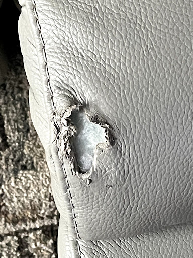 The person I spoke with when setting up the appointment indicated they would match the grain of the area repaired, but the area repaired has little to no grain to it. The woman I spoke with even asked who made the sofa so they would be able to match the grain. The material also filled in stitching because the hole was adjacent to stitches and the only way to repair was to fill in some of the stitches. I was advised of this before the repair started so no surprise there. My biggest disappointment is that the repair created a divot where there wasn't damage and it is now completely smooth. I pointed out the roughened area on the one repair and a second layer was applied. ( third photo and 4th photo) I asked the technicians if they warrant their work against cracking or peeling, but was told they do not. The fill material is completely smooth not grain matched as described, but the color is matched on both pieces. I have had a hole repaired in a center console in a car and the grain was embedded in the repair but this was done by another company so my expectations were that the repair would be in a like manner. Its good not great, cheaper than a new sectional piece and Natuzzi sofa. Thats why...